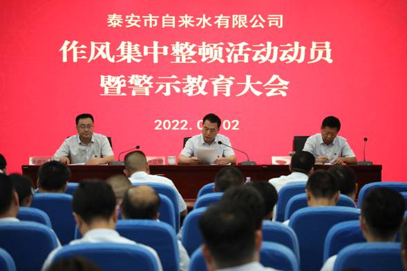 ?xxxx為深入貫徹落實(shí)市委、泰山城建集團(tuán)黨委作風(fēng)集中整頓活動動員大會精神,全面查找問題,深入抓好整改,推動作風(fēng)不斷轉(zhuǎn)變,8月2日,市自來水有限公司組織召開作風(fēng)集中整頓活動動員暨警示教育大會。