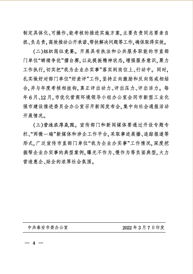 您當前位置》政策法規》中共泰安市委辦公室泰安市人民政府辦公室印發《關于開展“我為企業辦實事”活動的實施意見》的通知